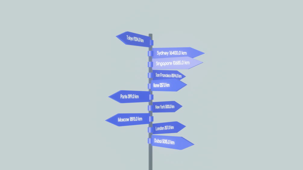 Description: The Geometric Signpost Version 1 is a Blender Blend file that allows you to quickly and easily create signposts where data is retrieved from a csv file. Read description in blend file.